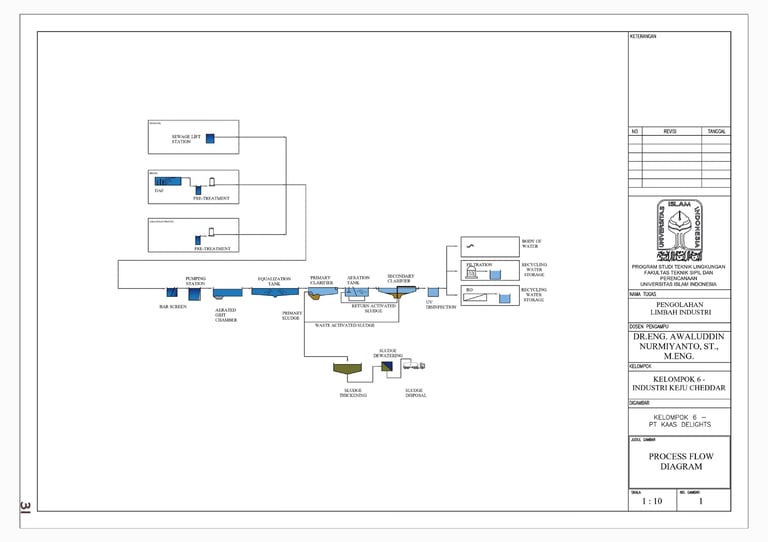 Industrial wastewater treatment is one of the most crucial aspects of sustainable production. As industries grow, so does their responsibility to manage waste efficiently and in compliance with environmental regulations. In our course project, we focused on designing an Industrial Wastewater Treatment Plant for PT Kaas Delights (non-existed company :D), a cheddar cheese manufacturer based in Bandung, Indonesia.